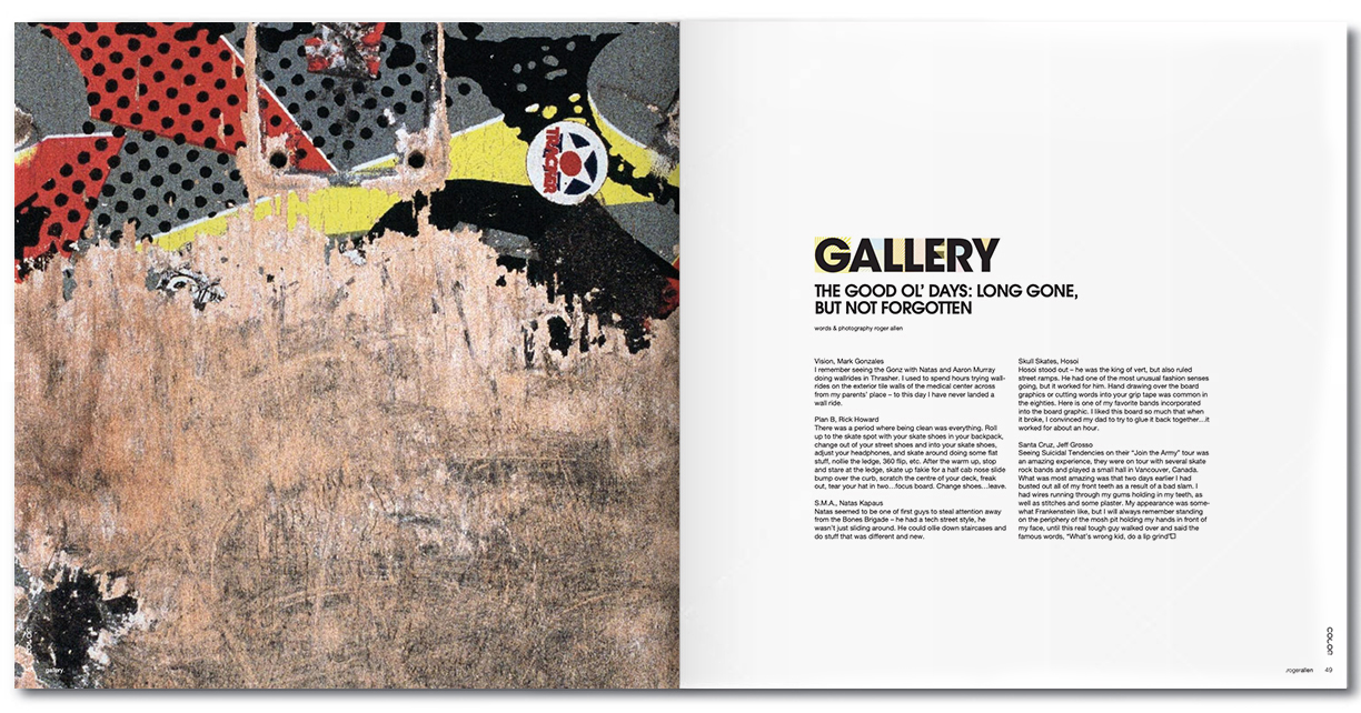I was asked to art direct the cover for Color Magazine V4I4. Between 2004 and 2006 two prominent staples to Vancouver's skateboard community, Rachael Davis and Lee Matasi were innocently killed by gun fire standing up for what they felt was right: peace. I used a medium format camera to photo document several of my old skateboards including the image of a child holding a gun on a broken skateboard which was used for a gate fold cover.